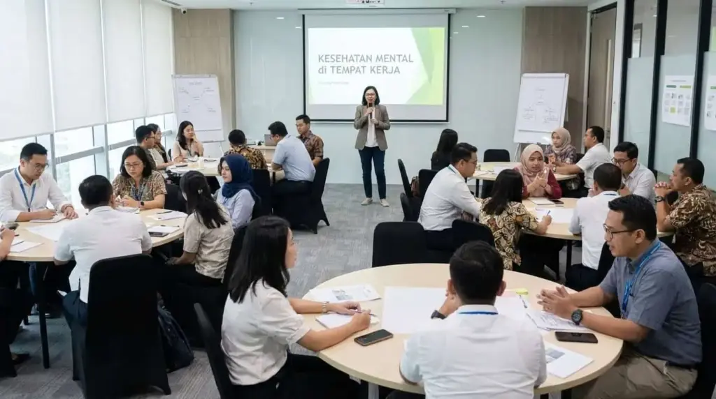 Workshop, screening psikologi, pelatihan kesehatan mental, dan konsultasi lingkungan kerja sehat.
