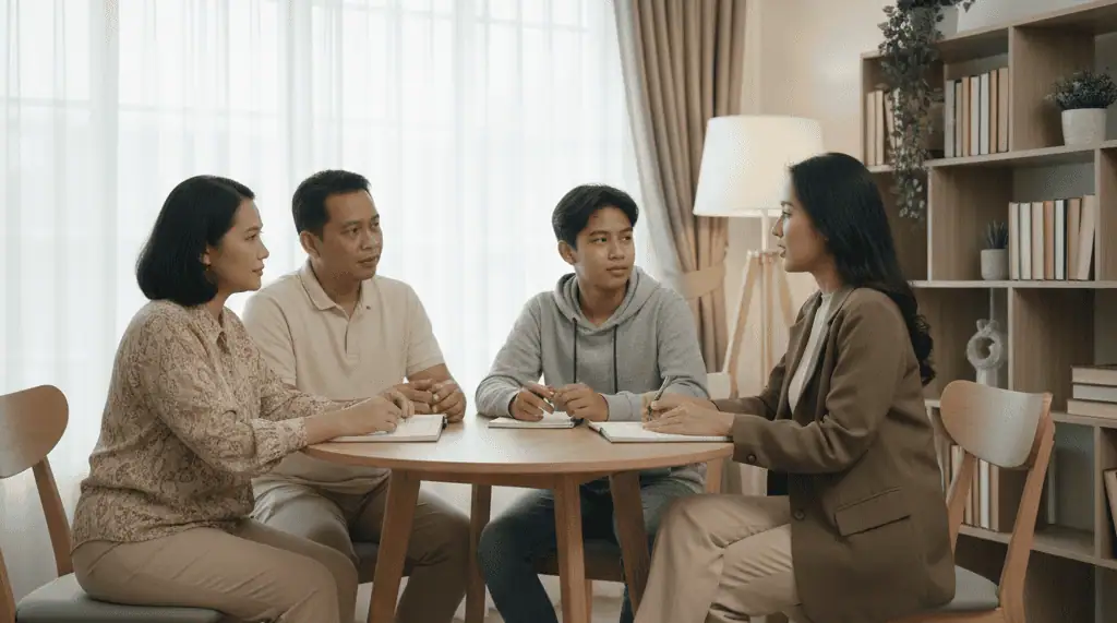 Pendampingan untuk memperbaiki pola interaksi antar anggota keluarga, menyelaraskan pola asuh, dan menciptakan suasana rumah yang lebih harmonis.